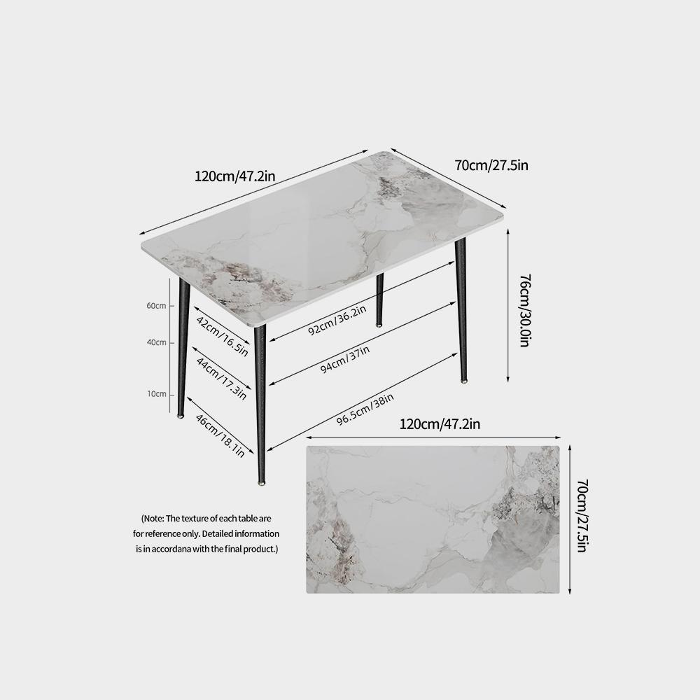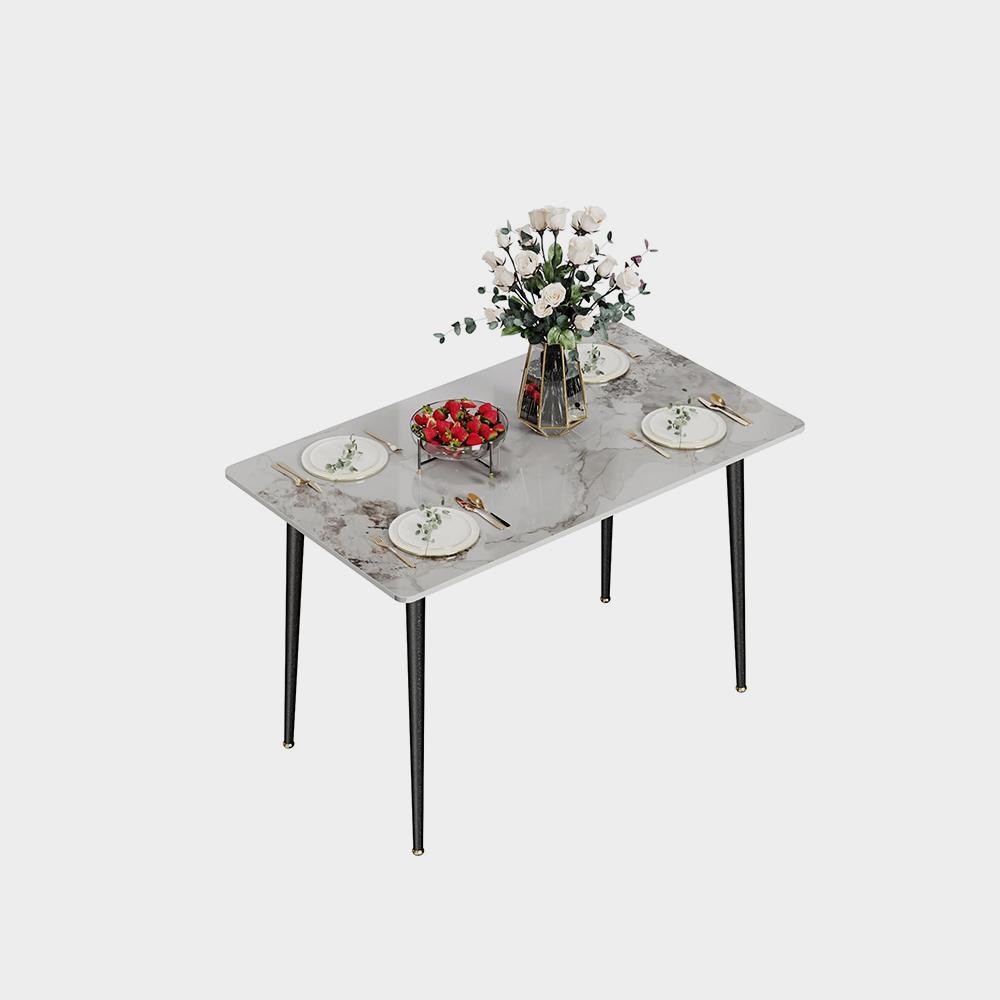 3 مراجعات لـ طاولة طعام للمطبخ مستطيلة حديثة من الحجر الملبد بتأثير رخامي مع أرجل معدنية مدببة